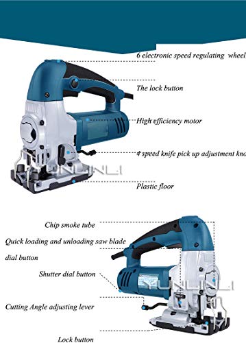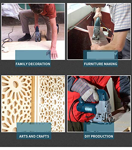 4 ORBITAL SETS UND MULTIGRAD CUTTING: adjust Sie einfach den Knopf von 0-3 den Hub von der Vertikalen zu Orbital zu berichtigen, um die Schneidstoffe mit unterschiedlichen Dichten entsprechen. Einstellbare Platte eine abgeschrägte Schneid von -45 ° beziehen kann, ~ 45 °, vielseitig anstelle Tangens, Fasen oder gekrümmte Schnitte ..
