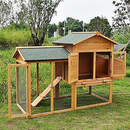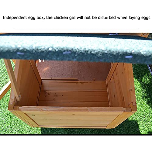 Verfügt über einen Nistkasten, ein Wohnhaus und einen Auslaufbereich im Freien, sodass sich Hühner drinnen und draußen bewegen können. Ausziehbares Tablett für einfache Reinigung, Rampe zum einfachen und sicheren Bewegen nach draußen und im Haus. Nistkasten lässt sich leicht öffnen, um Eier zu sammeln.