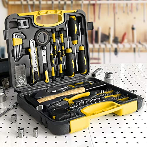WZG Werkzeug 60-teilig Werkzeugkoffer ideal für den Haushalt DIY (Gelb)