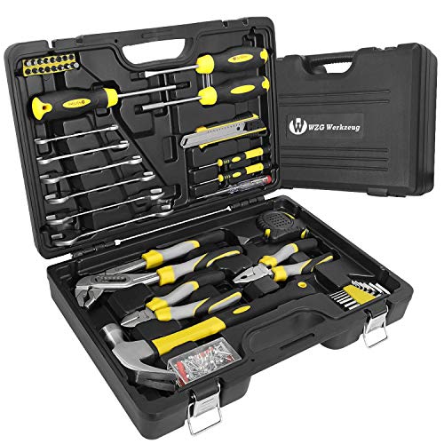 WZG Werkzeugset im Koffer, Werkzeug-Set,Werkzeugkoffer gefüllt, robust und hochwertig, ideal für den Haushalt oder die Garage, im praktischen Kunststoffkoffer 98 teilig