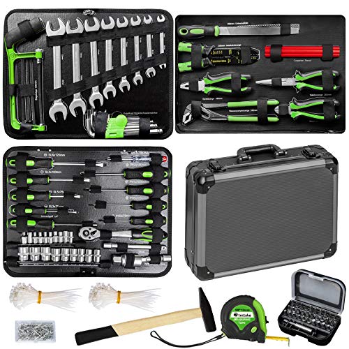 【VIELSEITIGER GEBRAUCH】 Für den Hausgebrauch, Renovierung und kleine Reparaturen am und im Haus, Fahrrad und Aufbau von Möbeln bestens adäquat. überaus alles klar! sortierter Werkzeugkasten mit stabilen, alles klar! handlichen Geräten