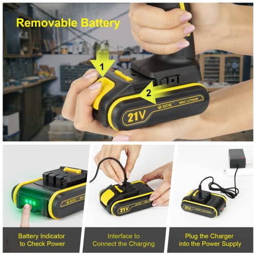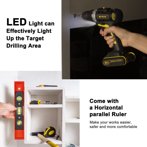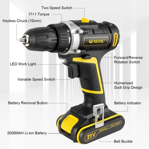 MDK Akkuschrauber/Akku Bohrschrauber 21V, mit 2x2000mAh Lithium Akku, 45Nm Max, 2-Gang, 17+1 Drehmomentstufen, 10 mm…