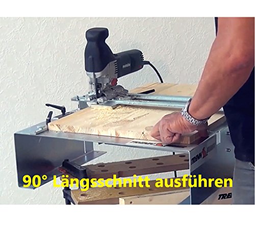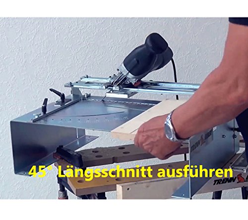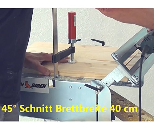 Vorführ Video – https://youtu.be/daBeimCnivA – markieren und mit rechter Maustaste Link öffnen- oder – www.schefe.de – Der Trenn-Biber 014LHK für 7 blattgeführte Schnittoptionen, mit Kreisschneider. Im Ertrag inbegriffen: 1 Stück Sägeblatt für Holz in 132mm Länge für den Betrieb mit dem Trenn-Biber, dazu 3 verschiedene Sägeblätte (Länge und Zahnteilung können vom Überführung abweichen) – Schnittvolumen bis 410 x 92 mm mit gut ablesbaren Millimeter- und Gradeinteilungen – Schnitthöhe bei Längsschnitt bis 81 mm – Schnitthöhe bei 45° stirnseitiger Gehrungsschnitt bis ca. 65 mm – Schnittbreite bei 45° stirnseitiger Abschnitt bis ca. 280 mm – 3-fachen Winkeleinstellungen, bis 50° in der Fläche und bis 45° in der Vertikalen für saubere und präzise Gehrungsschnitte – spielfreie einstellbare Maschinenführung für alle Markenstichsägen – zusätzliche Blattführungen unter dem Werkstück verhindert ein Verlaufen des Sägeschnitts – ein Verschieben des Werkstücks wird bei der handgeführten Stichsäge durch die Klemmbefestigung verhindert – alle im Handel erhältlichen hinterschliffene und gewellte Standardsägeblätter sind mit Schnittrichtung nach oben und nach unten verwendbar – Lieferung ohne Stichsäge Schefe Sägetechnik, Turmgartenweg 29, 88662 Überlingen Tel.:07551/67172, Fax: 0755167127,Internet: www.schefe.de, E-mail: schefe.saegetechnik@t-online.de