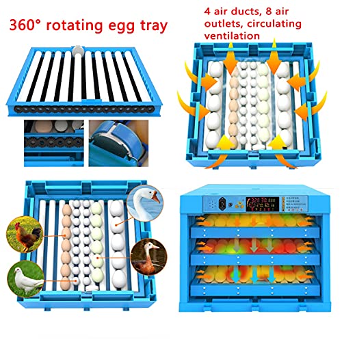 Kapazität: 320 Eiern, 213 Enteneier, 160 Gans Eiern, 480 Taubeneier, 800 Wachteleier