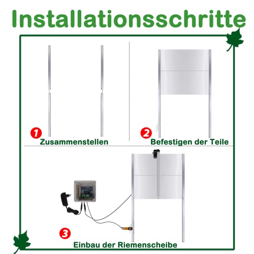 【Einfach zu verwenden】:Mit der mitgelieferten Anleitung können Sie schnell verstehen, wie die Hühnerstalltür funktioniert. Durch die Beseitigung des Übertragungssignals von der Steuerung auf den Motor wird die Tür des Hühnerstalls mit Hilfe der Schubstange automatisch auf und ab bewegt. Der Einbau der Tür ist ebenfalls einfach und leicht, alle Teile sind abhängig und einsatzbereit.