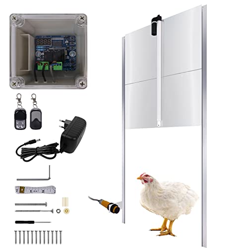 【Ideal zum Abschirmung Ihrer Hühner】:Diese automatische Hühnertür passt in die meisten Hühnerställe und Tierhäuser in Standardgröße. Ausgestattet mit zwei Fernbedienungen, können Sie das Tor per Fernbedienung steuern. Schützen Sie die Sicherheit Ihrer Hühner und Haustiere.