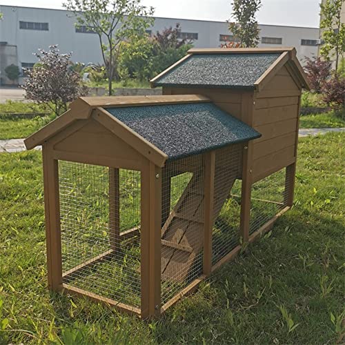 Hühnerstall aus Massivholz, geräumiger Innenraum, Die Oberfläche ist mit Umweltschutzfarbe auf Wasserbasis gebürstet, die umweltfreundlich ist und keinen eigenartigen Geruch hat. Asphaltdach, wasserdicht und sonnenbeständig, nach Hochtemperaturbehandlung, geeignet für die Platzierung in Innenhöfen, mit Türschloss-Design, um das Eindringen von Raubtieren zu verhüten.