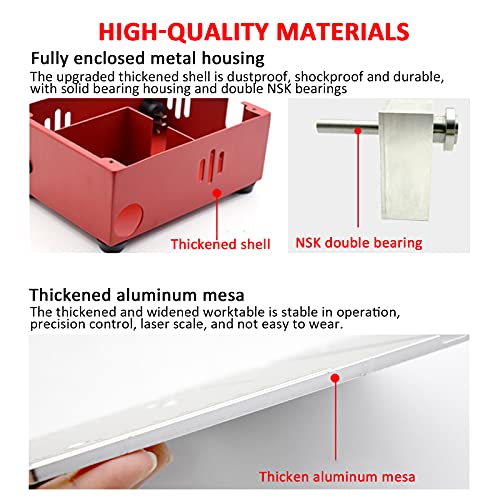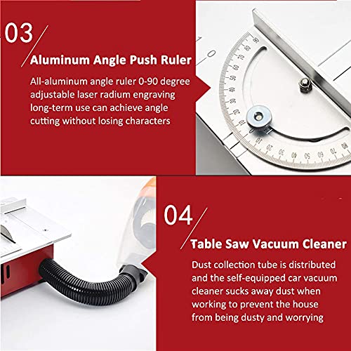 [HOCHWERTIGES DESIGN]: DIY multifunktionale Mini-Tischsäge, hochpräzise T-Nut, 3 mm massiver Rahmen und Plattendesign aus Aluminiumlegierung, langlebig und verformungsfrei, kann Ebenheit und hochwertiges Abmähen gewährleisten. Ausgestattet mit vier Gummi-Dämpfungspads verfügt es über Anti-Rutsch- und Dämpfungsfunktionen beim Umackern und ist geräuscharm.