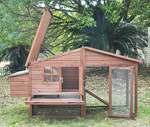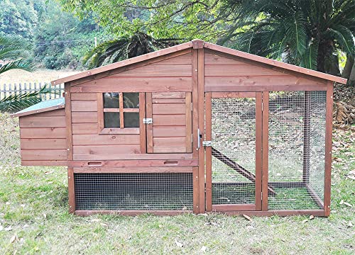 LANGE HALTBARKEIT-Winterfest Hühnerstall hergestellt sämtliche massivem Fichtenholz sondern jahrelange Alterungsbeständigkeit im Outdoor, Vollkommen fuchssicher.