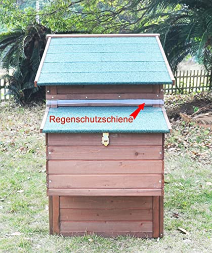 WETTERFEST-gestrichen mit tierfreundlichen Holzlasur, hochwertigen wasserabweisenden Bitumendach, Nistkasten mit Regenschutzschiene schützt den Hühnerstall ideal vor Nässe.