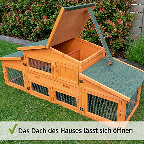 SCHNELLE REINIGUNG – Im Zuge die Abseitsposition hohe Schublade des Weiteren dem zu öffnenden Dach lässt sich die Hasenvilla (Kaninchengehege, Holzhütte, Kanninchenkäfig, Kleintier Käfig) stattdessen draussen leicht reinigen.