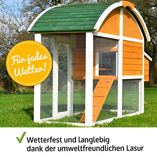 WITTERUNGSBESTÄNDIG – Das premium Haus/Freilaufgehege mithilfe Runddach wurde mithilfe einer ungiftigen Lasur gestrichen und schützt die Villa/Freigehege ideal vor Nässe – ideal sondern deinen Garten