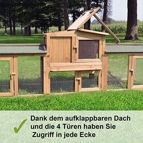 🐰 Dieser Hasenstall für draußen ist als Kleintierstall optimal für alle Nager geeignet, Hasen, Kaninchen bzw. Zwergkaninchen oder auch Meerschweinchen. Alle Bereiche in diesem Hasenstall sind gross dimensioniert und bieten innen im Hasenhaus und außen im Freilauf viel Platz.