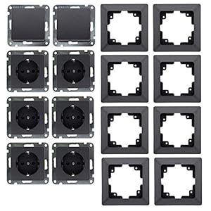 MILOS Steckdose Schalter Set – 6x Steckdose 2x Schalter Klemmanschluss I 8 Unterputz Komponenten mit 1-fach Rahmen für…