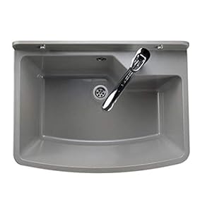 GOSPO Ausgussbecken mit stehende Armatur, Waschbecken 61 cm x 44 cm x 23,5 cm, Waschtrog mit Überlauf und Siphon…