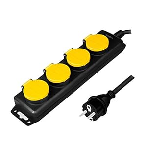 LogiLink LPS212 Feuchtraum-Steckdosenleiste, 4-Fach, Schwarz mit gelben Deckeln